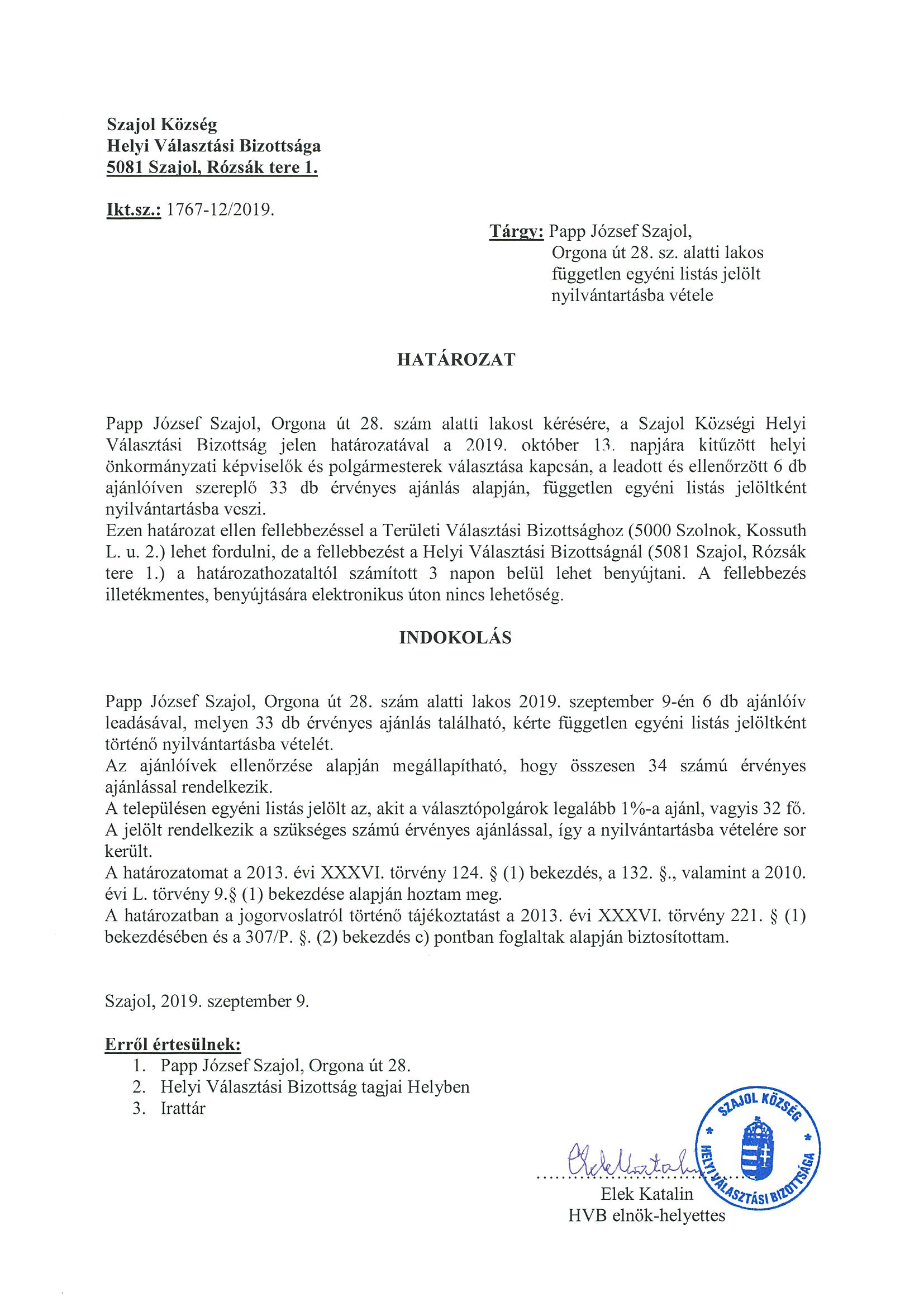 VÁLASZTÁSI ÜGYINTÉZÉS