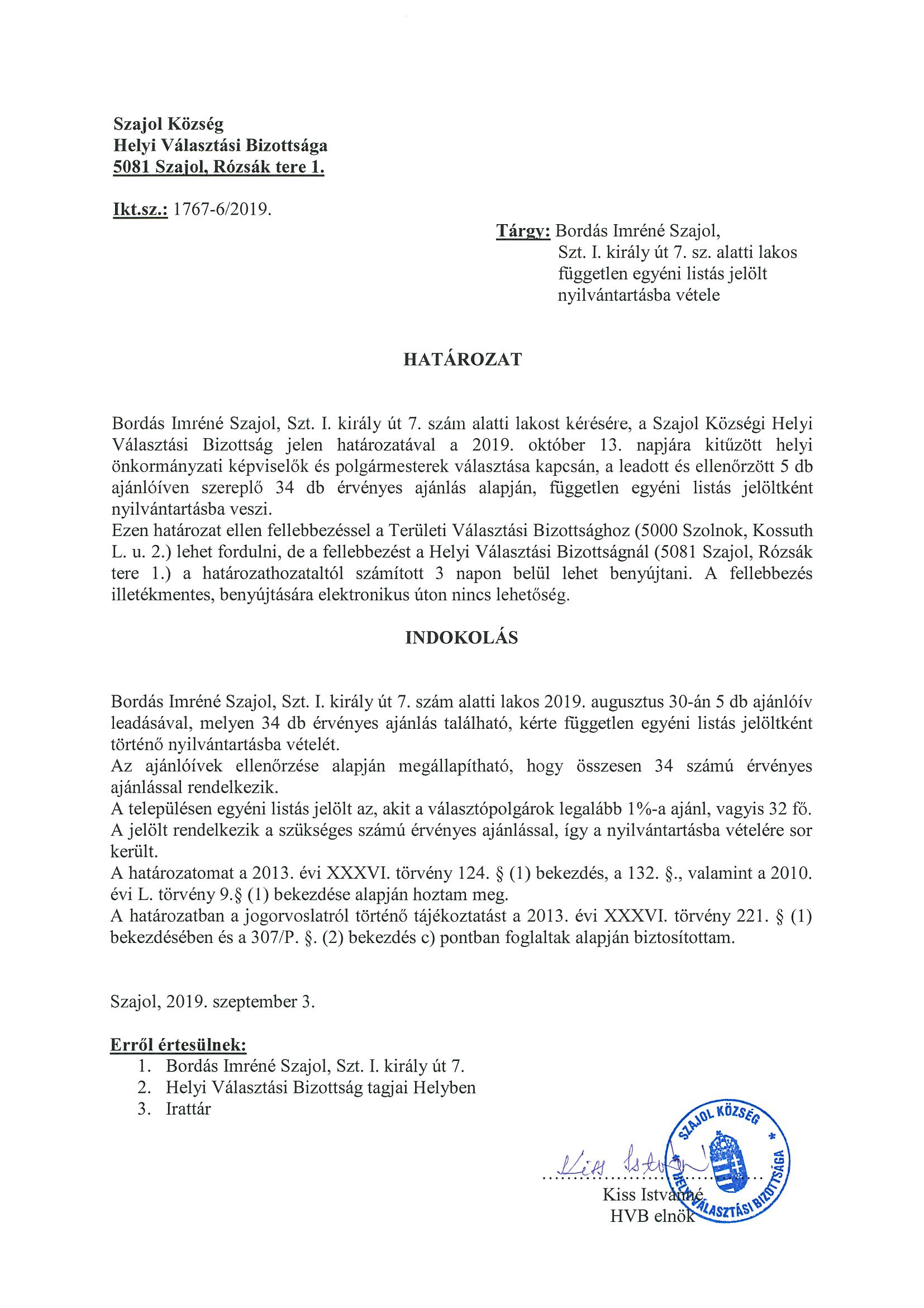 VÁLASZTÁSI ÜGYINTÉZÉS