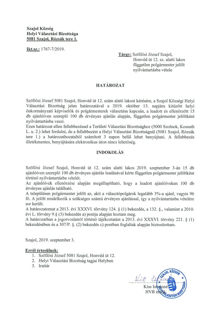 VÁLASZTÁSI ÜGYINTÉZÉS