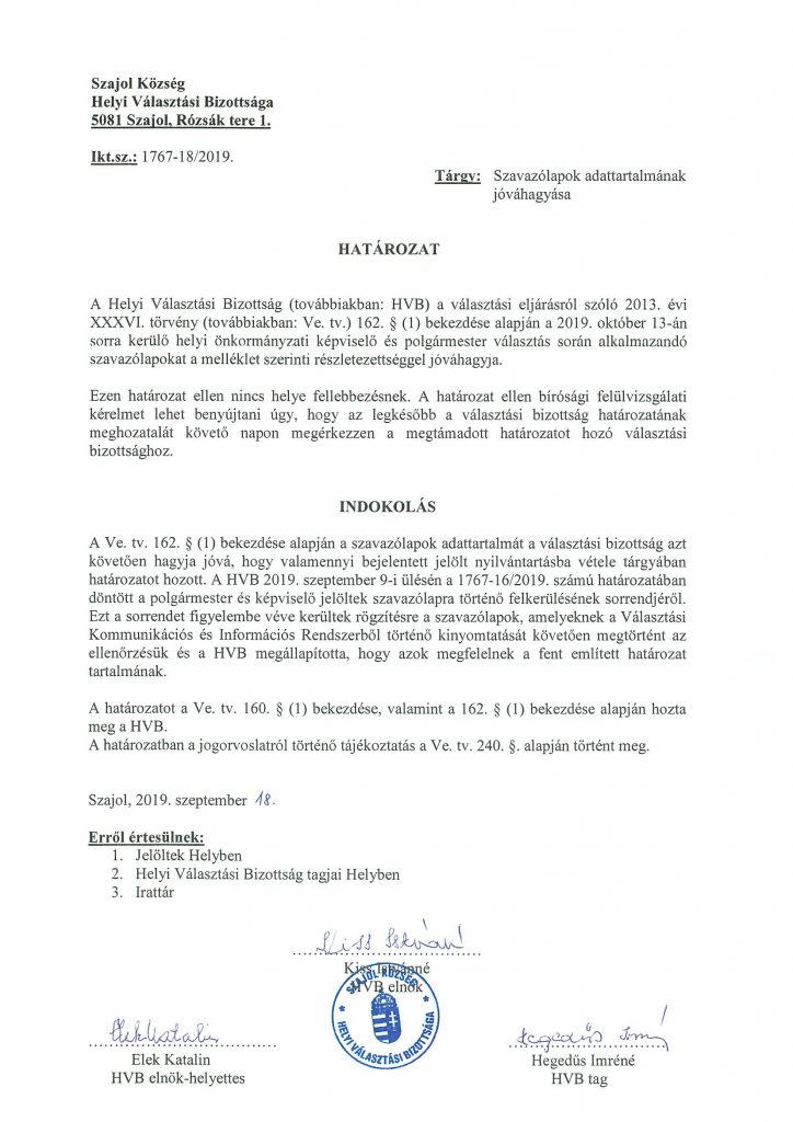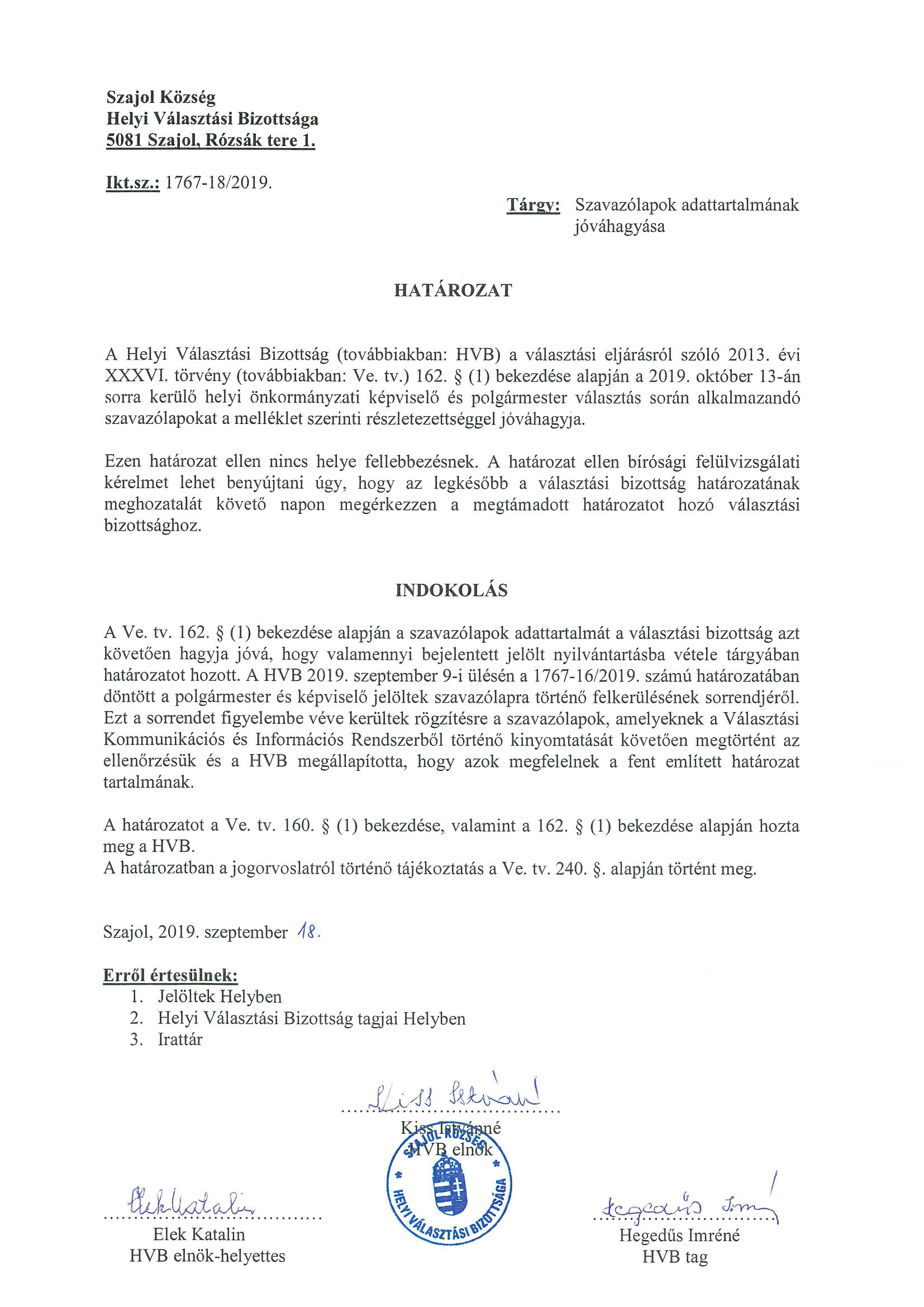VÁLASZTÁSI ÜGYINTÉZÉS